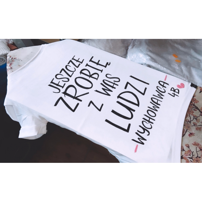 Nie masz pomyślu na prezent? Poniżej znajdziesz niektóre z naszych realizacji będą świetną inspiracją na zrobienie niespodzianki dla bliskich. Wśród nasyzch koszulek można znaleźć zarówno krótkie teksty, podpisy, jak i wierszyki, rymowanki. Jeżeli nie znalazłeś/aś w naszej galerii interesującego projektu nie przejmuj się. Chętnie wspólnie stworzymy koszulkę dla Ciebie!